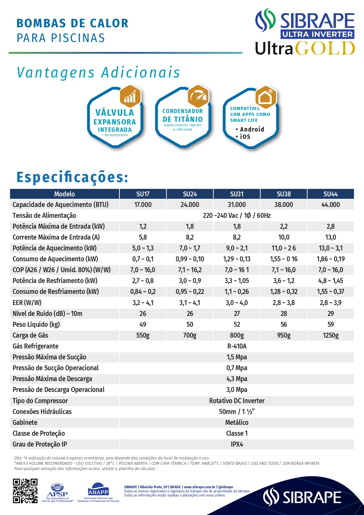 BOMBA DE CALOR WIFI SIBRAPE ORTUM PRIME - S38 - INVERTER 220V 60HZ