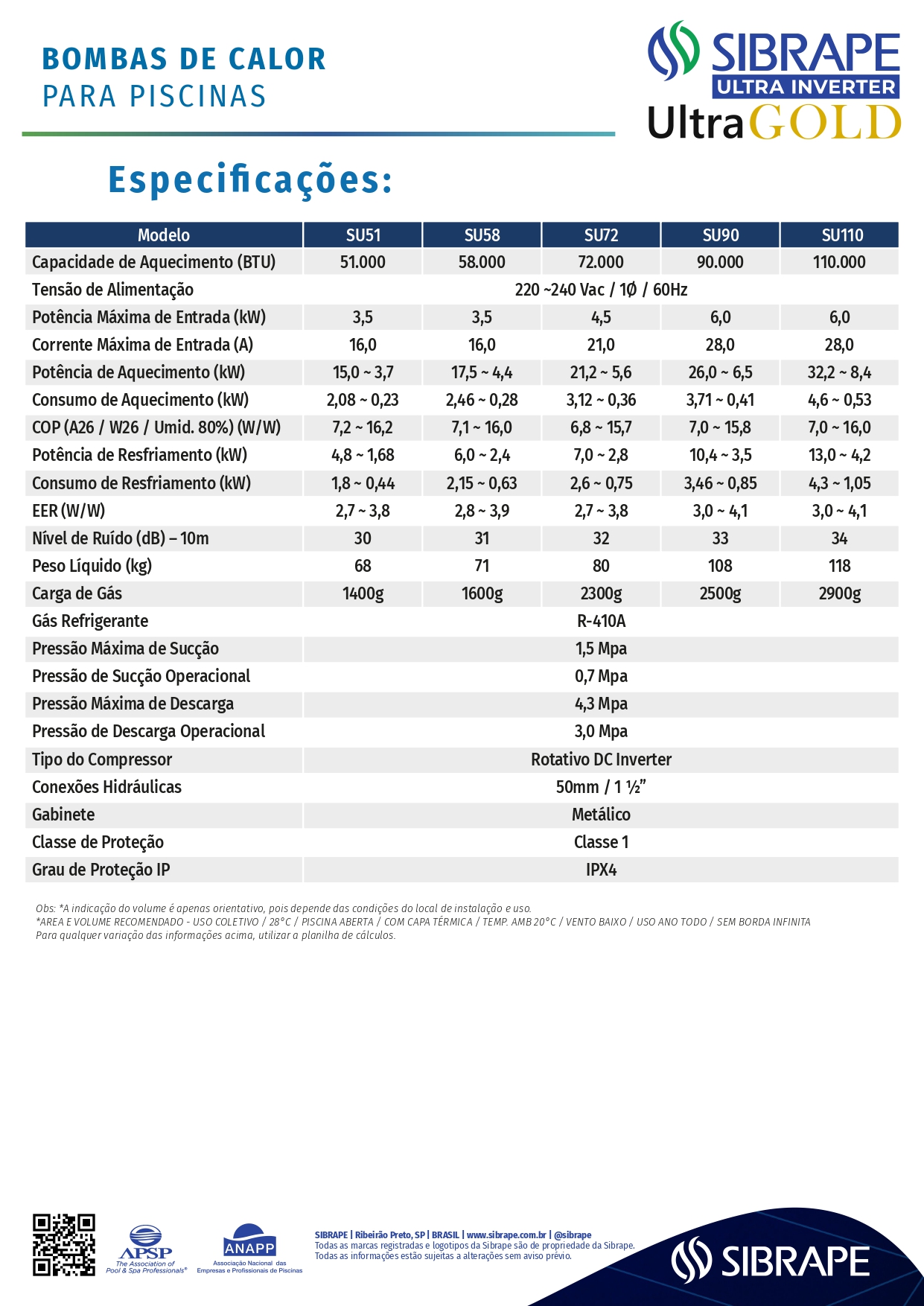 BOMBA DE CALOR WIFI SIBRAPE ORTUM PRIME - S58 - INVERTER 220V 60HZ
